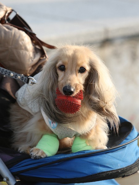 せいんは地面でも2回だけボール遊びしたけど、すぐにバギーに乗せてボールを食み食み。
