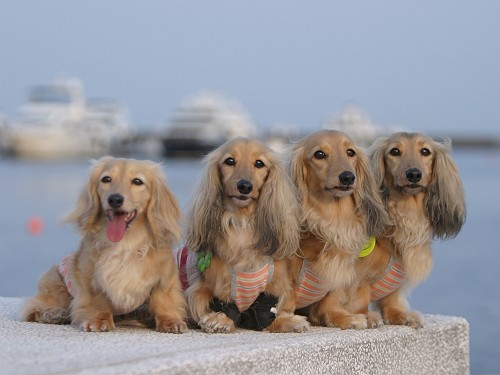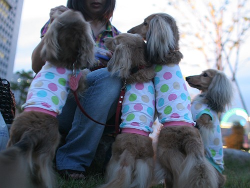 バギーに乗ったら、お座りじゃなく全員フセ状態でくつろいでたよ(笑)