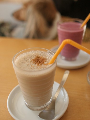 で乾いた喉を潤す為に『豆乳スムージー』(おとやん)と『ベリーのスムージー』(私)を注文
