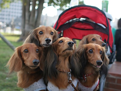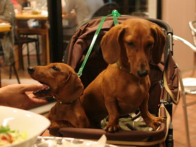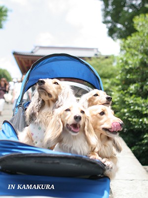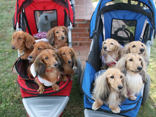 色違いの同じバギーで合計ダックス9ワン一緒に居ると目立つよね(笑)