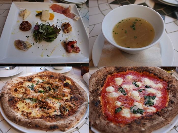 前菜8点盛り、スープ、ピザorパスタ、コーヒー(お替り自由)で1500円