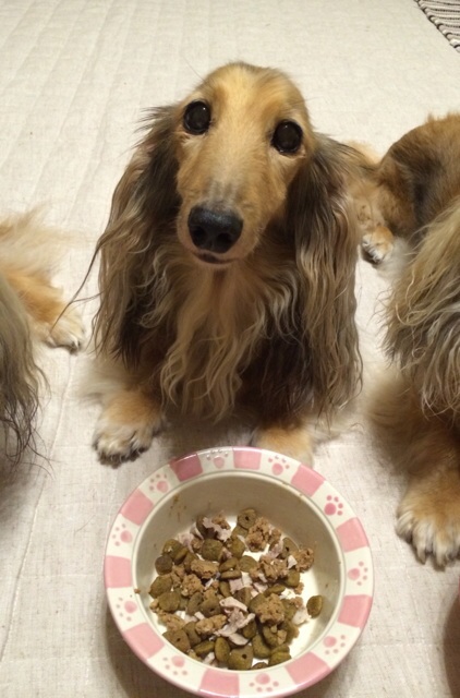 不信感ありありで匂いを嗅いだら、待ってましたという勢いでガツガツ食べた。