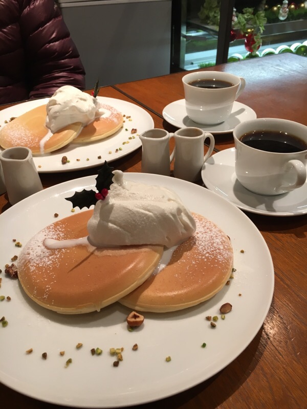 久々のモトヤのパンケーキはクリスマスメニューになってました。
