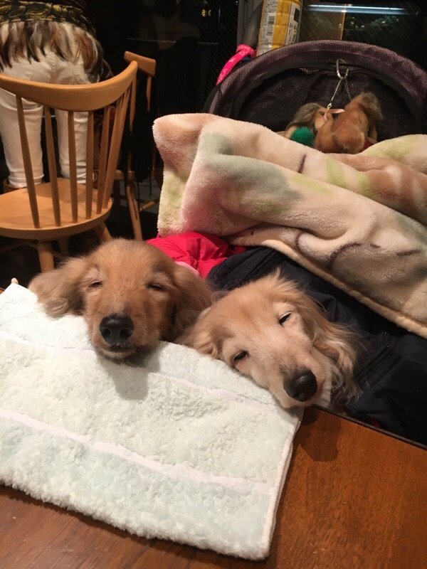飼い主がずっと一緒だと寝る時間が少なくなってお疲れになっちゃうね(笑)