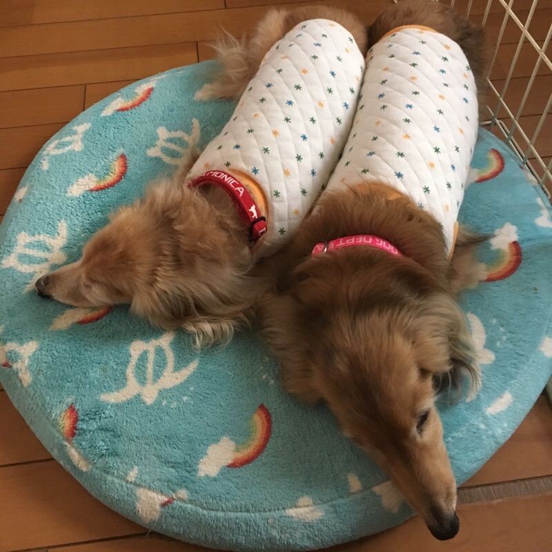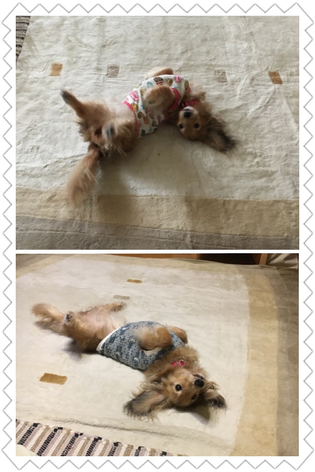 かのしおは同じかっこうしてヒーター前で爆睡~
