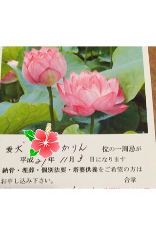 今日、かりんの火葬した所から1周忌法要の案内が来た。