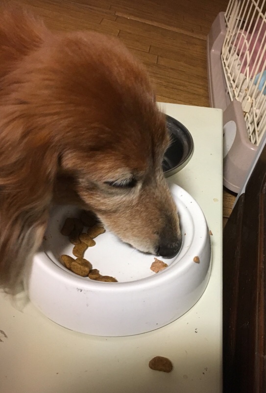 食欲はボチボチな感じ…朝の食べ残しを食べ始めたあすか