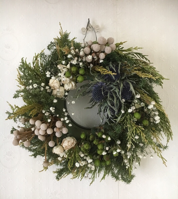 今日は午前中に実家に行き、毎年恒例の母手作りのリースを受け取りました。