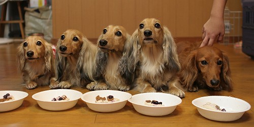 整列の写真、食いしん坊あすかは姪っ子が首輪を抑えないとフライングするので、あえて端っこになったよの(笑)