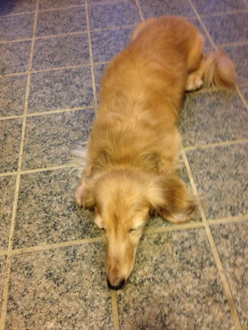 いっぱいボール遊びしたしおんは玄関に入ってお手入れの順番待ち中に疲れ果てて寝ちゃいます(笑)