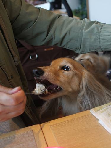 飼い主のブレックファーストにお付き合いでお裾分け貰って嬉しそう(*^^*)