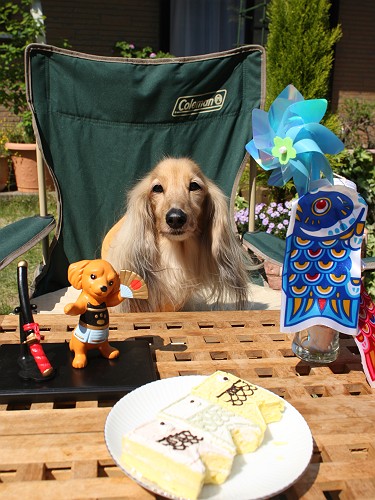 先に子供の日なので、4日のクッキーちゃん達とのおデートの時に買ったこいのぼりケーキを食べようね