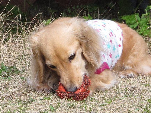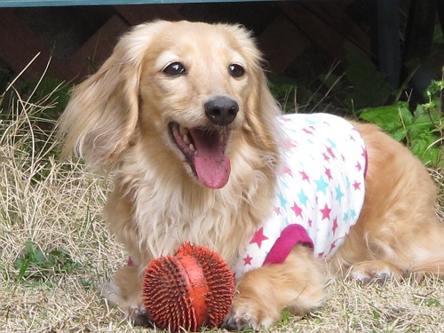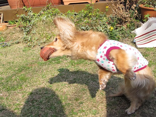 しおんは旅行でボール遊びできなかったので、今日はいつも以上にはりきってボール遊びしてたよ。