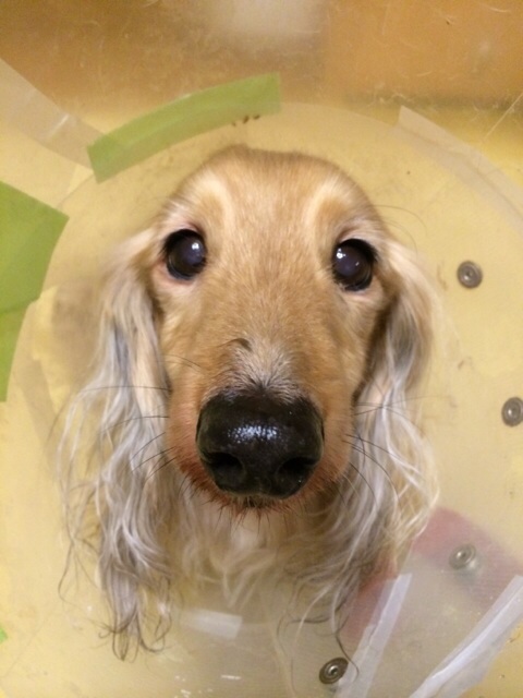 しおんの時と同じ様かなぁ~と思ったけど、家に帰ったらお尻を舐め舐め始めたのでカラーをする事に。