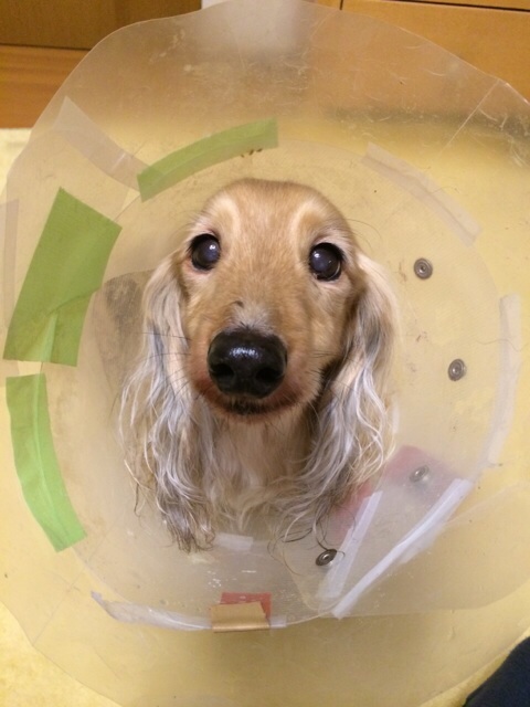 そうだ、避妊手術の後は術後服を着てたからカラーした事無かった。