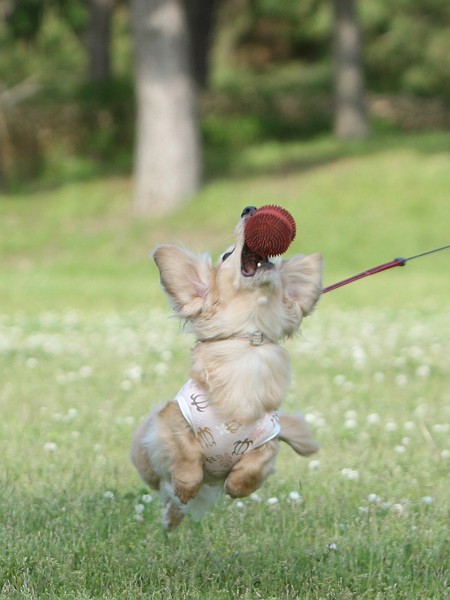 写真を撮っている意外にも飼い主二人掛で遊ばせてるので、食後のお腹には苦しい良い運動になりました(笑)