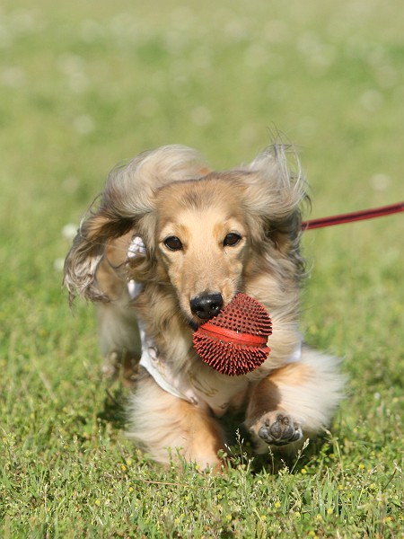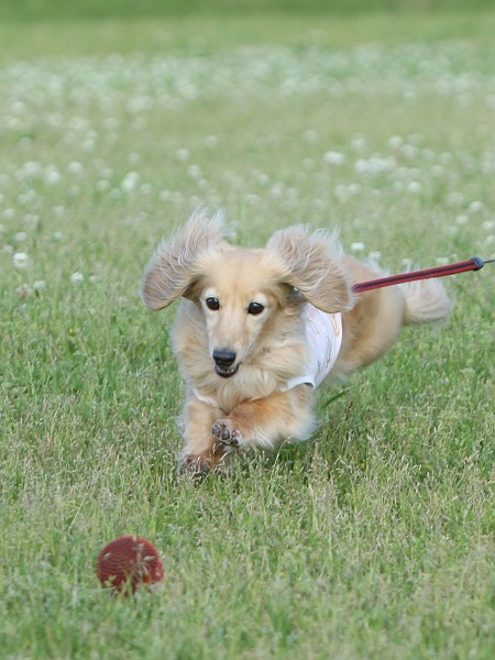 飼主二人が交代で遠くまで連れて行って走って帰ってくるの。