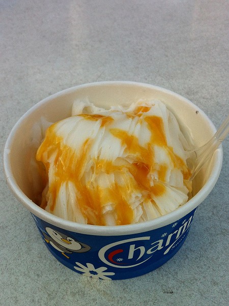 バニラアイス味の氷のような物でマンゴーソースをかけてもらいました。