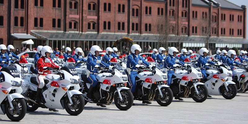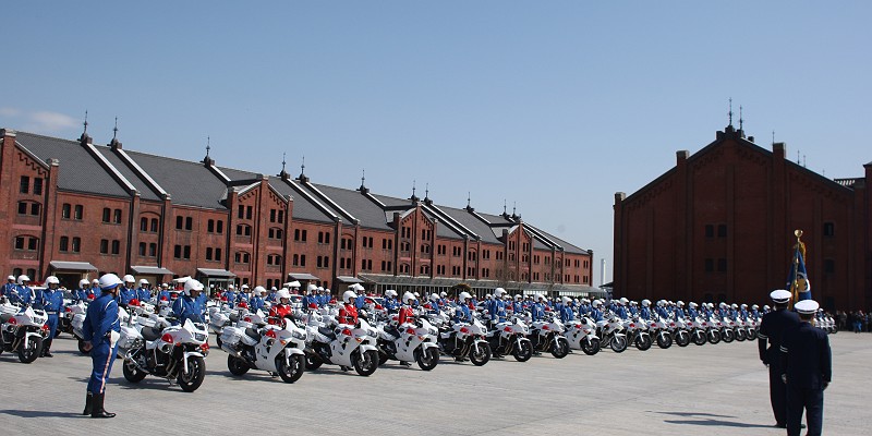 でも、赤レンガに着いてみると白バイ隊が勢揃い。