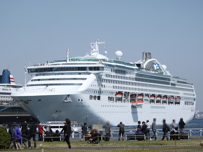 山下公園の方を通って行ったら、大桟橋にいつも良く見る飛鳥Ⅱよりも大きな船が・・・サンフラワーでした。