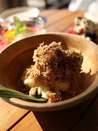 豚肉だけどツナみたいな食感で下にマッシュポテトが入ってます。
