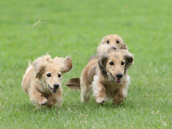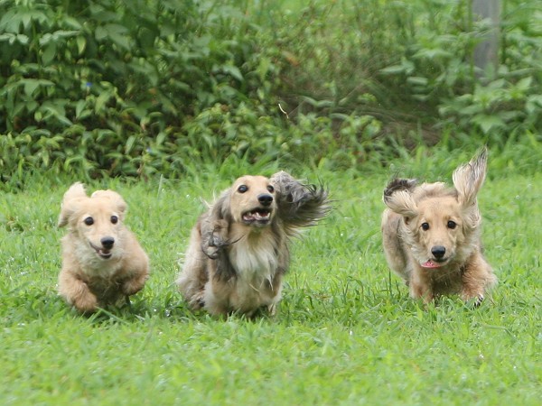 1時間ほど遊んでだいぶ満足している頃に4ヶ月のチョコタンSダックスちゃんがご入場~。