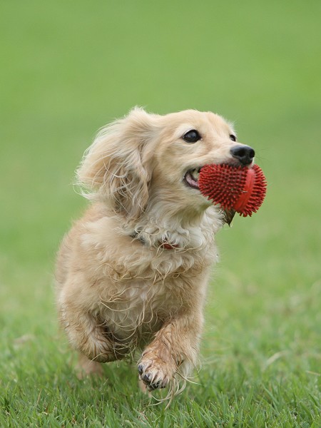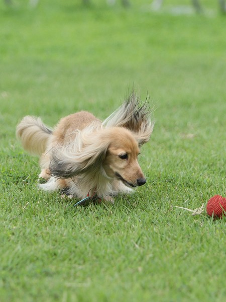 しおんがボール遊びしてるのを一緒になって追いかけるベビーダックス。