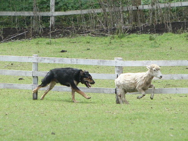 お次は何か乗り物券を使おうと歩き出すと、牧羊犬による羊の追い詰めをやってる時間だったのでしばし観覧。