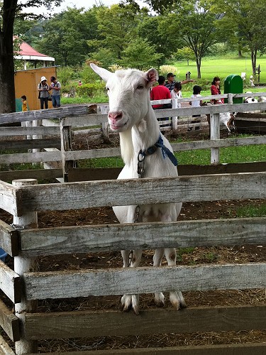 山羊さんも居て、柵からこんな風に『エサください』状態でいたりします(笑)