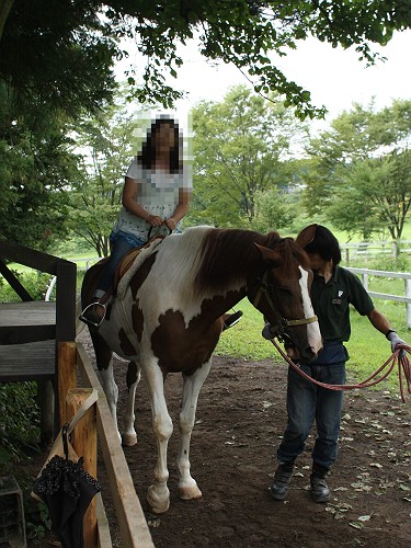 次は乗馬・・・もちろん係員の人が引いてくれて1周するだけの体験乗馬ですが(笑)