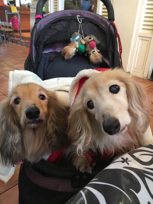 飼主がモーニングを食べるので、かのしおも朝ご飯をお弁当箱に詰めて(笑)お外で朝ご飯。