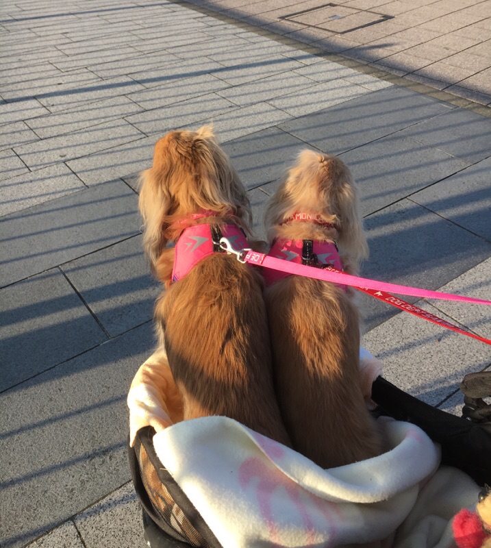 お花見散歩、吐き気がなくなったからか元気動きも良い。