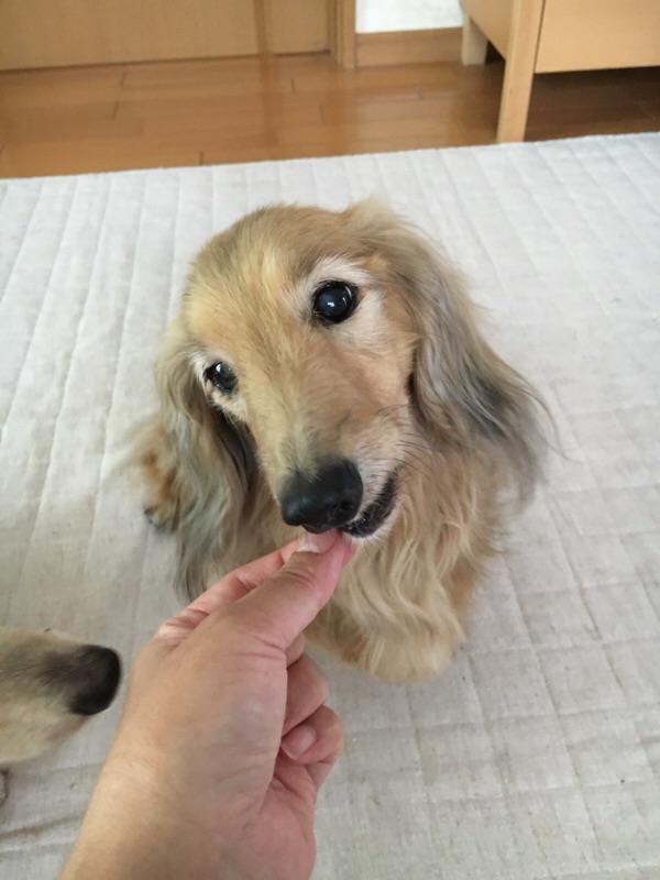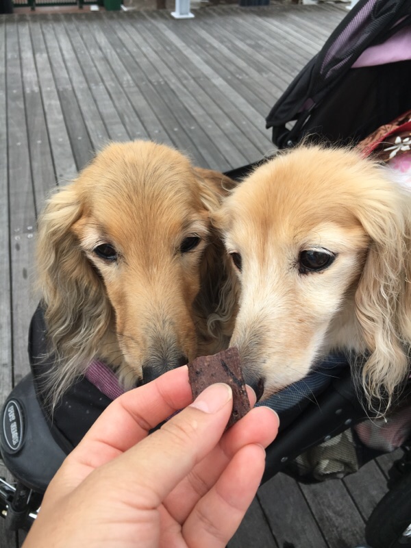 ご褒美用に持って行ったジャーキーの箱を見ると欲しそうにしてる。