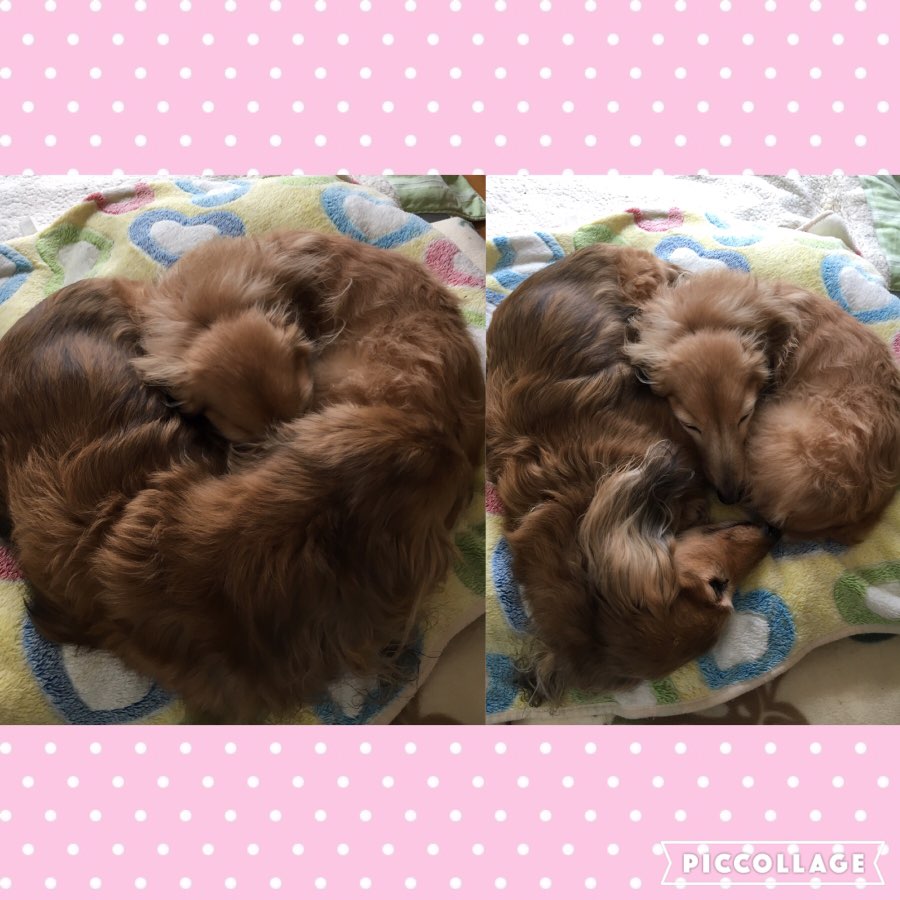 どちらかというと、かのんが寝てる所にしおんがベッタリくっついて寝てる感じかな?