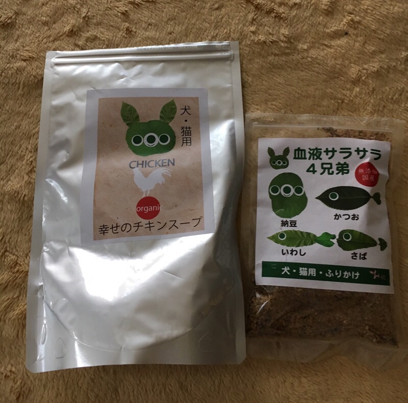 食欲がない時様にチキンスープを購入。右は気休めかも?だけど血液サラサラのふりかけ。