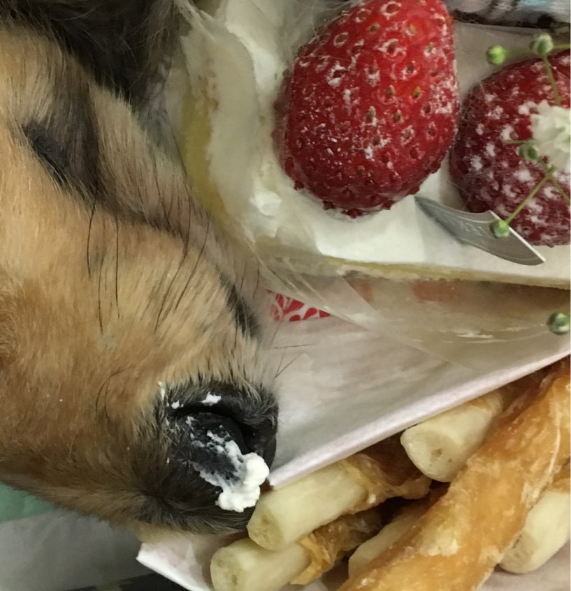 せいんにショートケーキを持たせてくれました。