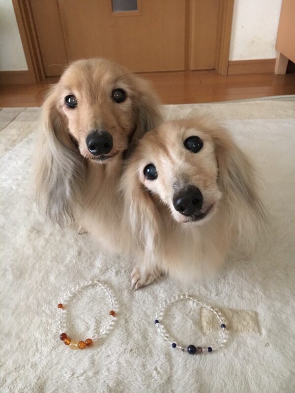 かりん、せいんのは骨壷に掛けてます。