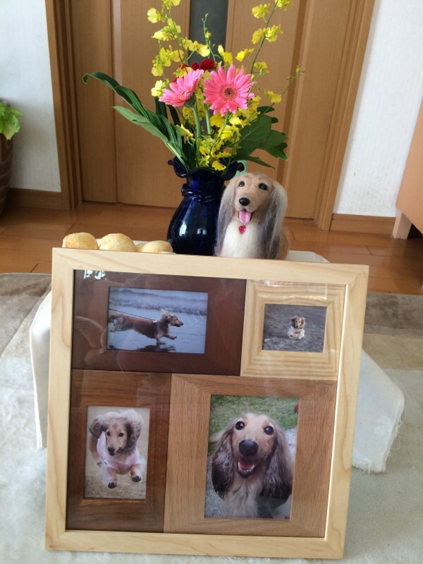 数日前から一周忌に向けて遺影の写真やかりんの楽しそうな写真を探し、プリントアウトし、買っておいたフォトスタンドに入れました。