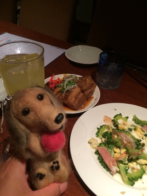 出かけようとしたけどやめて夜は飼い主とお出かけかりん(笑)で近くの街の沖縄料理のお店で飲んだ。