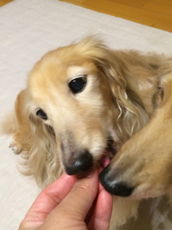 待合室で受け取ったフィラリア薬を会計終了前にご褒美オヤツ代わりに食べて駆虫完了。