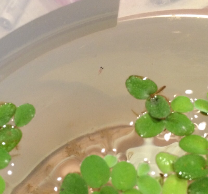 第一次の子は体長8ミリ位?だいぶめだかっぽい体系になってきた。