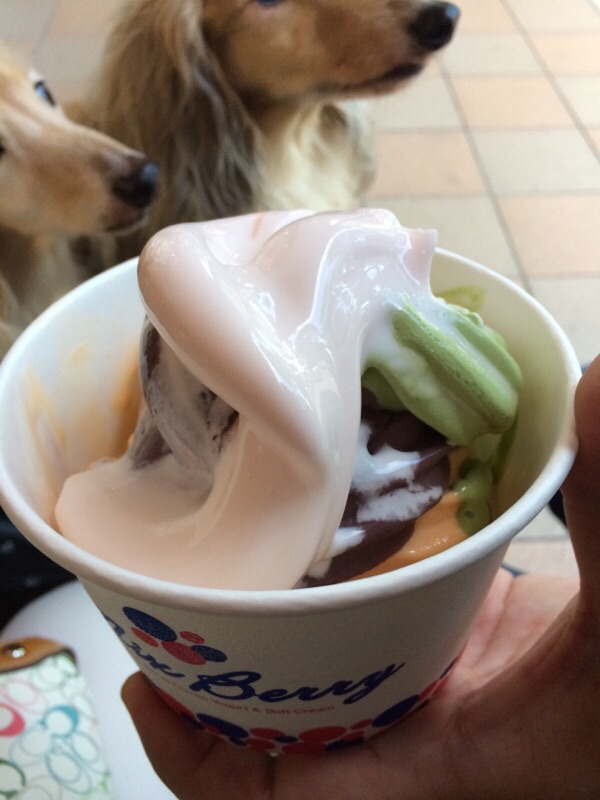 先にミニかりんと私が車から降りておとやんが駐車しに行き、暑いのでまたMix Berryで食べる事に。