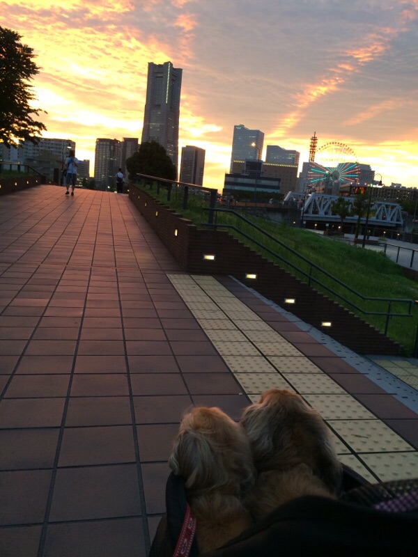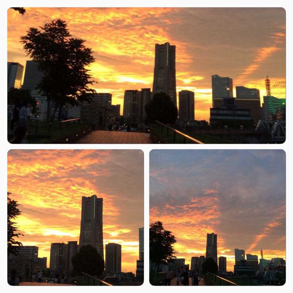 象の鼻から見たみなとみらいが夕焼けで綺麗だったよ。