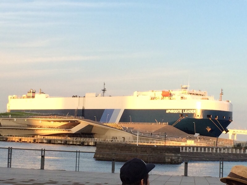 大桟橋には大きな貨物船が停泊してた。