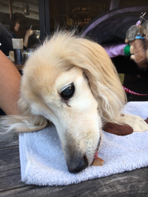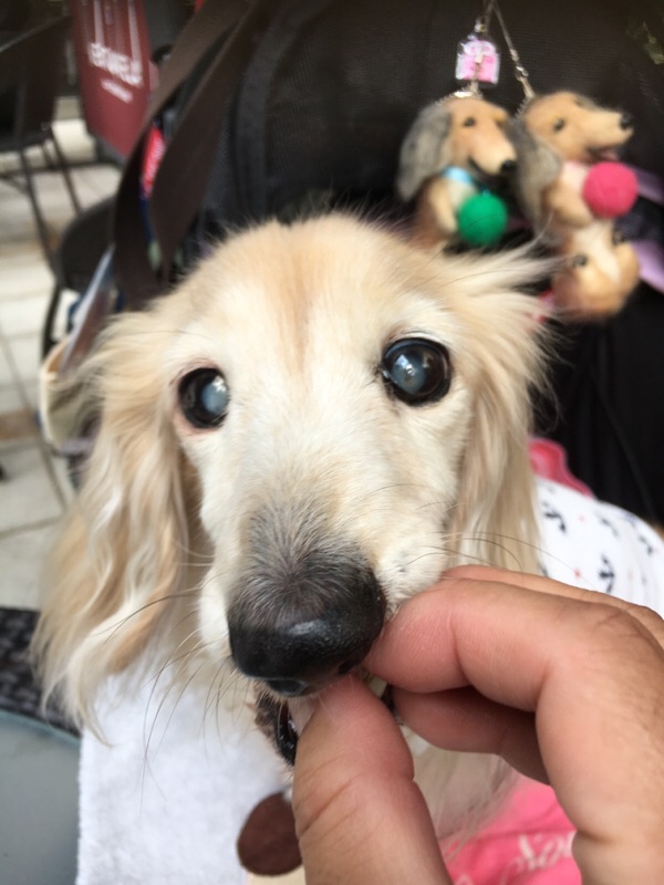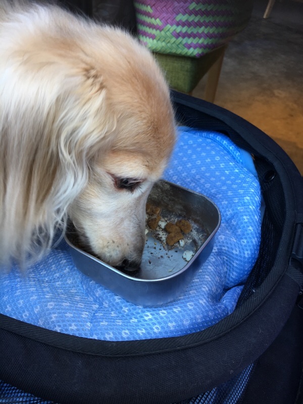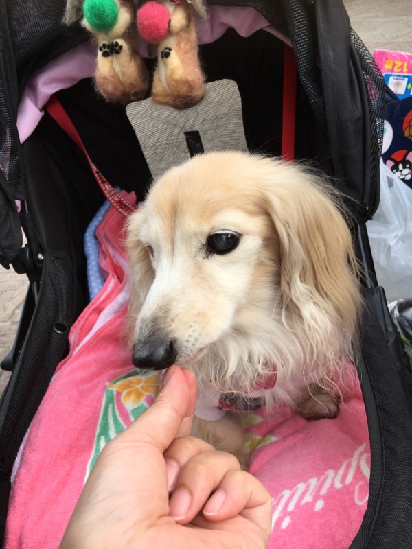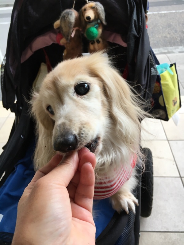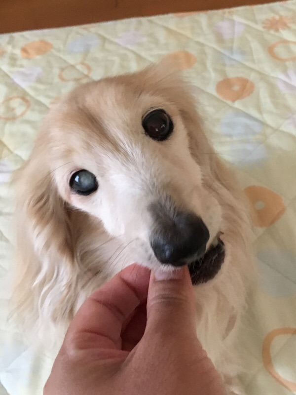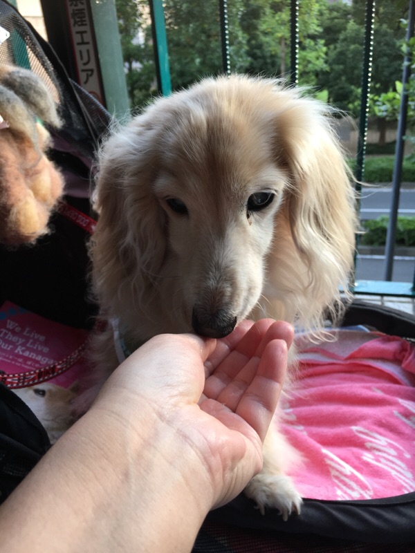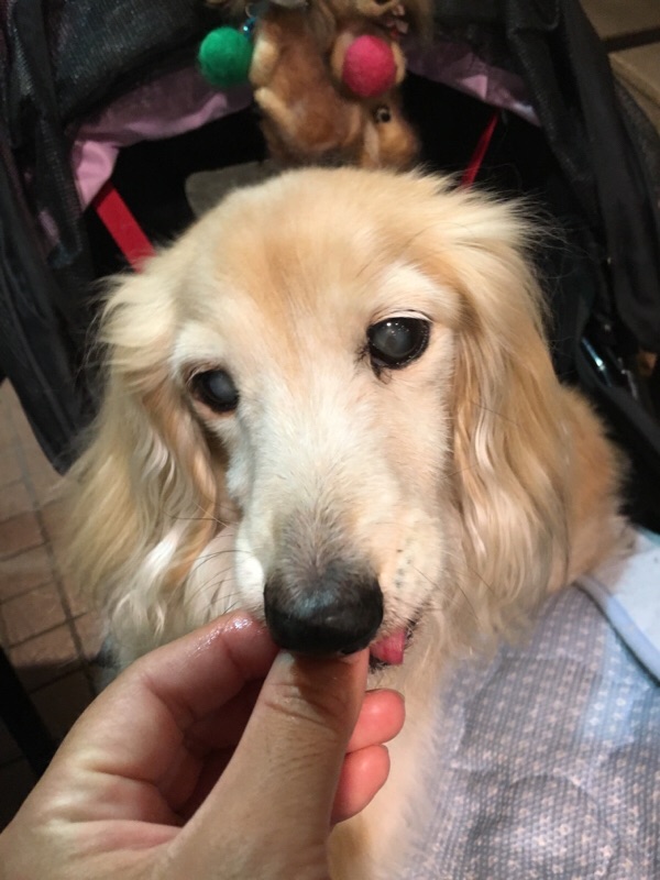 今朝、病院に急いだのでご褒美のオヤツを忘れ、家に帰ってからあげました。