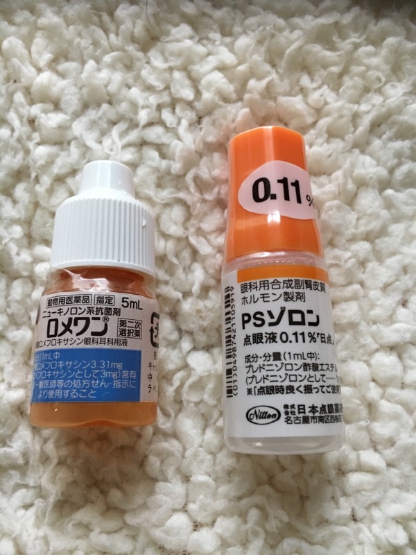 前回の外部甲状腺検査も問題なして、眼以外はいつも通りのお薬、フィラリア薬を貰いました。
