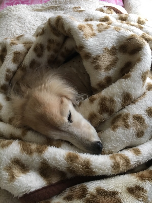 落ち着かずにウロウロしてたので毛布で包んであげたらやっと寝た。可愛い(*^o^*)