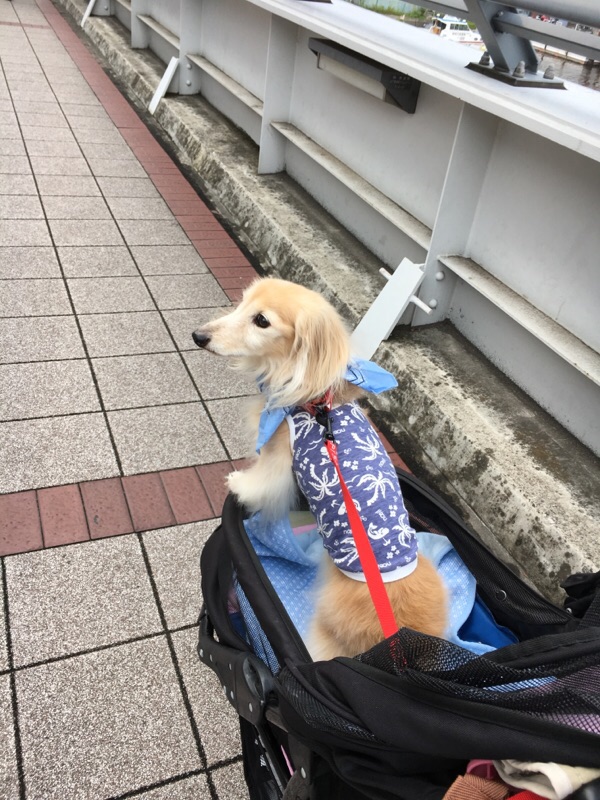 ハーネスが良いけど、夏は暑いからね。