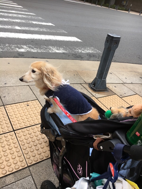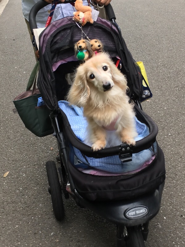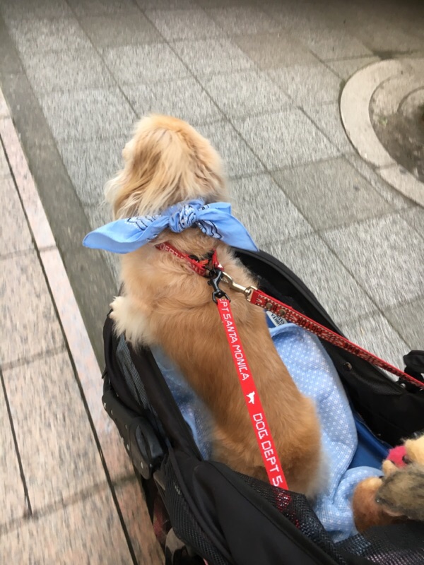 暑いから公園まではバギー乗車。