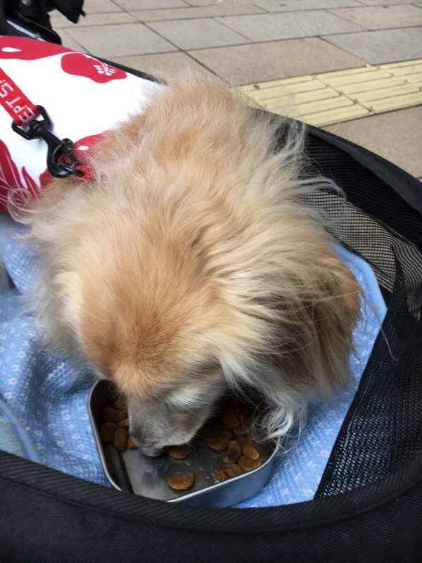 とにかく蒸し暑かったので、赤レンガのペットOKゾーンで休憩。